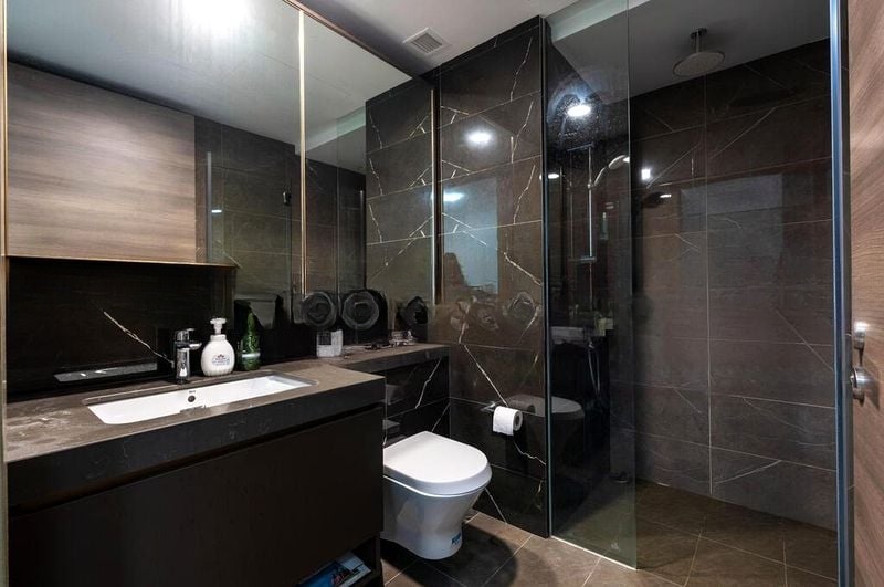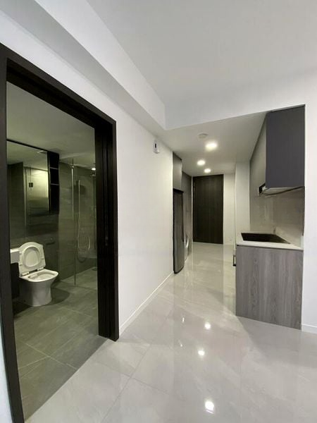 Step into a beautifully designed modern minimalist 1-bedroom unit that exudes elegance and comfort. The open-concept living room welcomes you with polished tile flooring and an abundance of natural light, enhanced by the ceiling fan and balcony access, offering urban views of the vibrant surroundings.