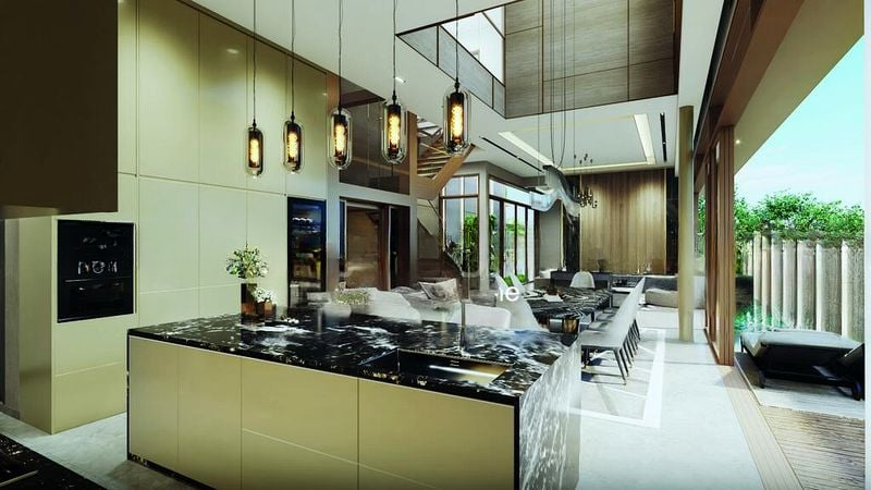 This impressive 5-bedroom unit boasts standout features including a grand marble island kitchen with integrated appliances, a spacious living room with a striking feature wall, and a private lift that opens directly into your home. The master suite offers a lavish walk-in closet with glass doors and a luxurious ensuite bathroom featuring a freestanding bathtub and double vanity, ensuring comfort and style at every turn.