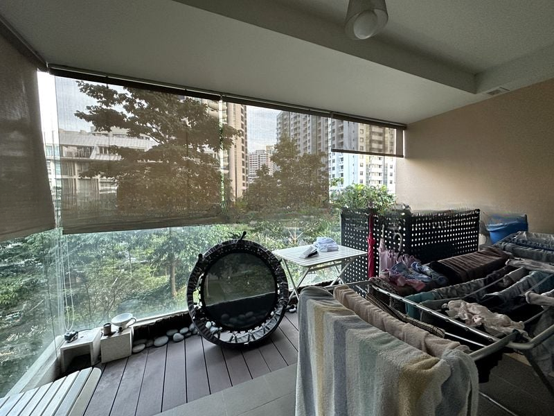 Step into a sanctuary of light and space at LOFT @ NATHAN, where abundant natural light floods through floor-to-ceiling sliding glass doors, creating a bright and airy ambiance. The stunning views of lush greenery and the cityscape invite you to unwind and enjoy the serene surroundings from your private balcony, complete with elegant wooden decking.