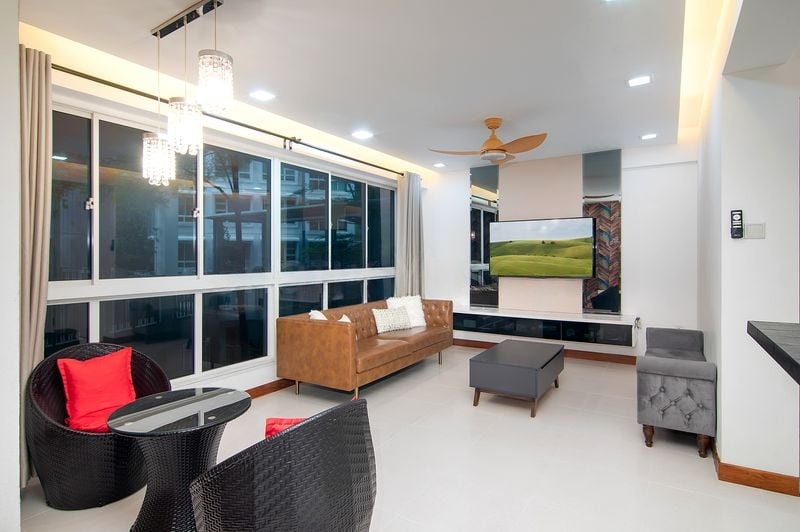 Step into this inviting HDB flat at Punggol Field, where you are greeted by an ambiance of warmth and comfort. The marble-look floor tiles glisten under the abundant natural light streaming through large windows, creating a cozy atmosphere that instantly makes you feel at home. The open-plan living area, adorned with full-length curtains and a ceiling fan, is perfect for both relaxation and entertaining, while the star-patterned ceiling wallpaper adds a unique touch of charm.