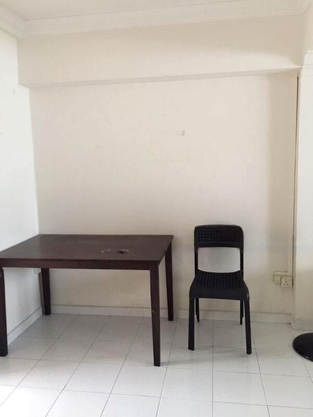 Step into this functional 3-bedroom flat at 6 Holland Cl, where the open plan living and dining area welcomes you with its moderate natural light and classic checkered floor tiles. The green sofa and dining set create a cozy ambiance, perfect for family gatherings. The built-in wardrobe in the bedroom offers ample storage, while the wall-mounted air conditioning ensures comfort throughout.