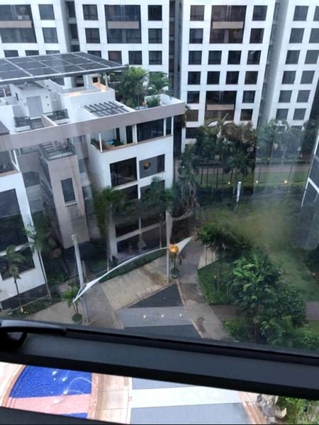 Step into a bright and airy sanctuary where abundant natural light floods through floor-to-ceiling windows, offering breathtaking views of the river, city skyline, and lush greenery. The polished stone floor tiles and dual chandeliers in the spacious open-plan living and dining area create an inviting ambiance, perfect for both relaxation and entertaining.
