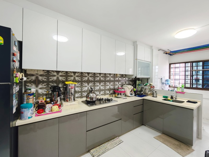 Step into this beautifully maintained 5-room improved corridor end unit and be greeted by an abundance of natural light that fills the spacious living area. The bright and airy ambiance, complemented by a large built-in display cabinet and ceiling fans in multiple rooms, creates a welcoming atmosphere perfect for relaxation and entertaining. Enjoy views of the neighborhood from the comfort of your home.