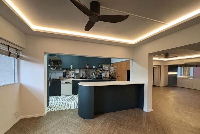 Step into this beautifully renovated HDB flat and be greeted by an abundance of natural light that dances across the modern minimalist interiors. The striking white brick feature wall in the living room complements the sleek black track lighting, creating an inviting ambiance perfect for relaxation or entertaining. Large windows frame a captivating urban landscape, ensuring you enjoy the city view from the comfort of your home.