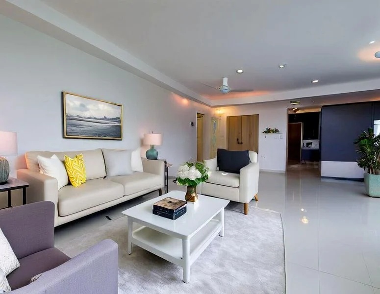 Step into a cozy sanctuary where modern elegance meets comfort. This beautifully renovated 4-room flat greets you with a striking stone feature wall and warm wood-look flooring, complemented by cove lighting that bathes the space in a soft glow. Enjoy the unblocked views of lush greenery and the vibrant cityscape from your high-floor vantage point, creating a serene backdrop to your daily life.