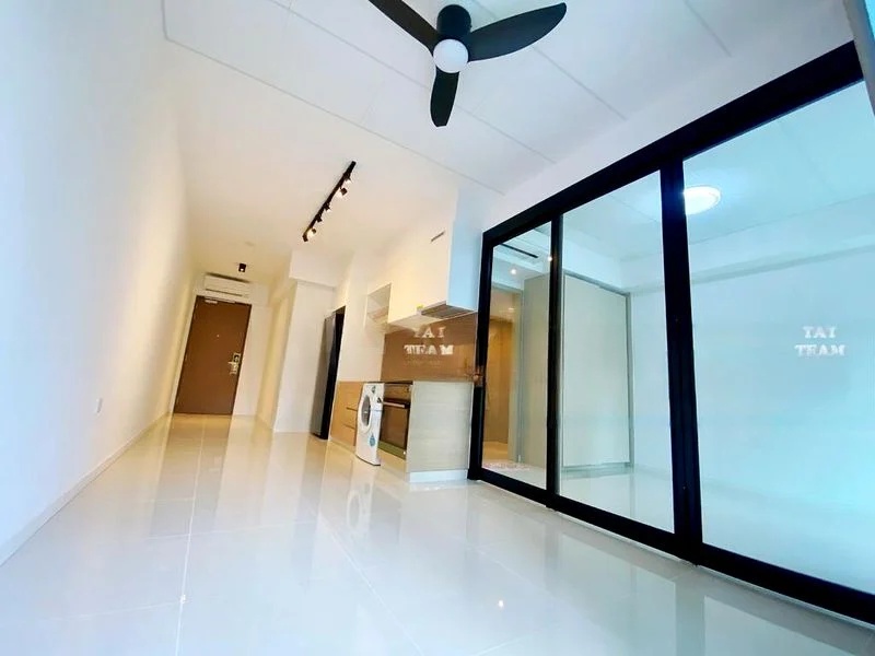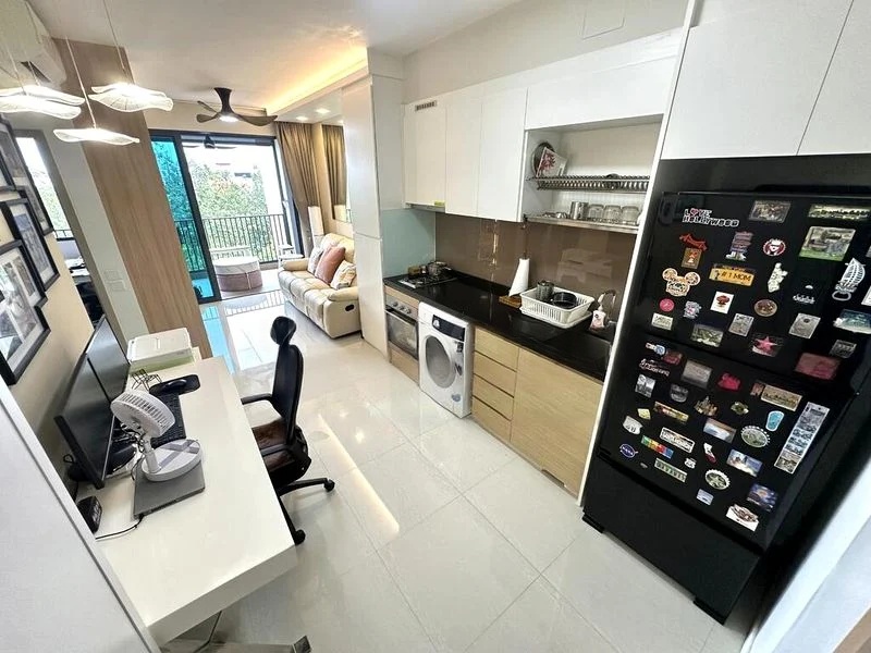 Step into a world of modern elegance as you enter this brand-new unit at Treasure at Tampines. Bathed in abundant natural light, the open layout features large floor-to-ceiling sliding doors that seamlessly blend indoor and outdoor spaces, offering stunning urban views complemented by pockets of greenery. The minimalist finishes, highlighted by a taupe glass backsplash in the kitchen, create a serene ambiance that invites relaxation.