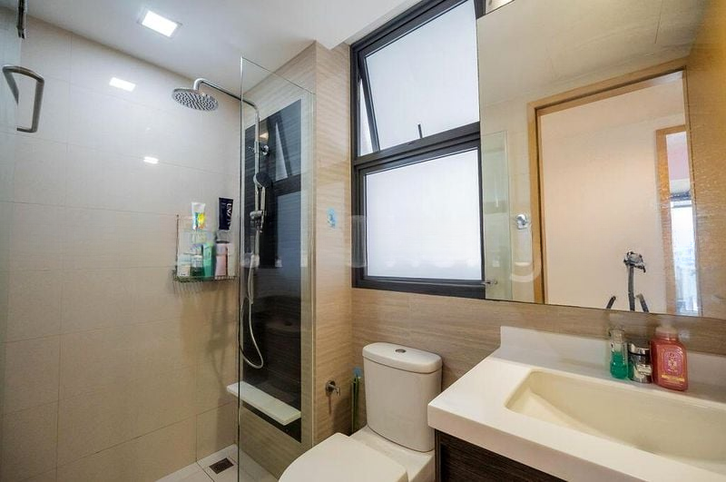 This thoughtfully designed 3-bedroom condo features a master bedroom with an en-suite bathroom and built-in wardrobe, ensuring comfort and convenience. The common bedroom is perfect for guests or family, while the versatile study room with dual workstations caters to your professional needs. The L-shaped kitchen is a culinary delight, equipped with a gas hob and ample storage, complemented by a stylish bathroom featuring a rain shower and glass shower screen.
