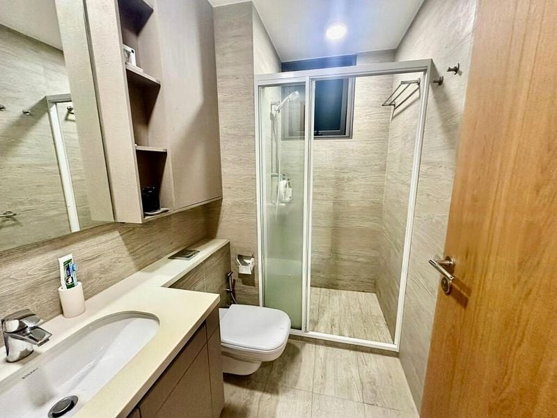 Step into this modern minimalist unit at Rivercove Residences and be greeted by an ambiance that seamlessly blends style and comfort. The designer finishes, including a textured feature wall and cove lighting, create a warm and inviting atmosphere, while the unobstructed views of the city skyline and lush greenery from the balcony elevate your living experience.