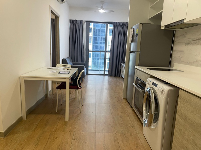 This well-maintained 1-bedroom + study unit features a thoughtfully designed layout, including a dedicated study alcove perfect for remote work. The linear kitchen boasts white countertops and integrated appliances, while the luxurious bathroom features a glass shower enclosure and vessel sink, complemented by marble-look wall tiles. Enjoy the convenience of a Jack-and-Jill bathroom accessible from both the study and master bedroom, enhancing functionality without compromising style.