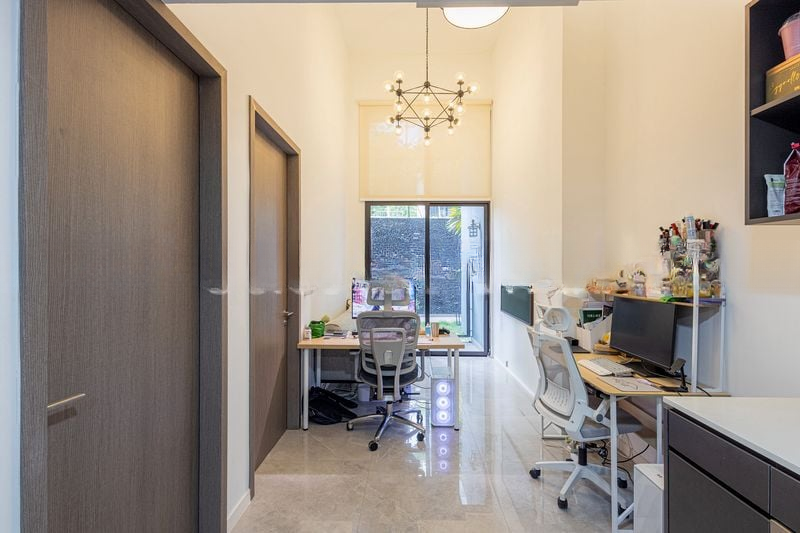 Step into a world of elegance as you enter this stunning 1-bedroom unit at Kent Ridge Hill Residences. Bathed in natural light, the open layout showcases high ceilings and floor-to-ceiling windows that frame picturesque views of the lush greenery and the inviting lap pool. The ambiance is bright and airy, enhanced by modern finishes and a striking chandelier that elevates the space.