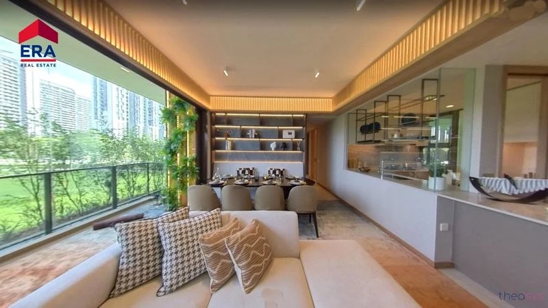 Step into a world of modern luxury as you enter this brand-new designer unit at The Botany at Dairy Farm. Bathed in abundant natural light, the open layout showcases breathtaking views of the pool, lush greenery, and the city skyline, creating an ambiance that feels like a high-end resort. The entrance features a striking curved timber ceiling and a serene bonsai tree, setting the tone for an exquisite living experience.