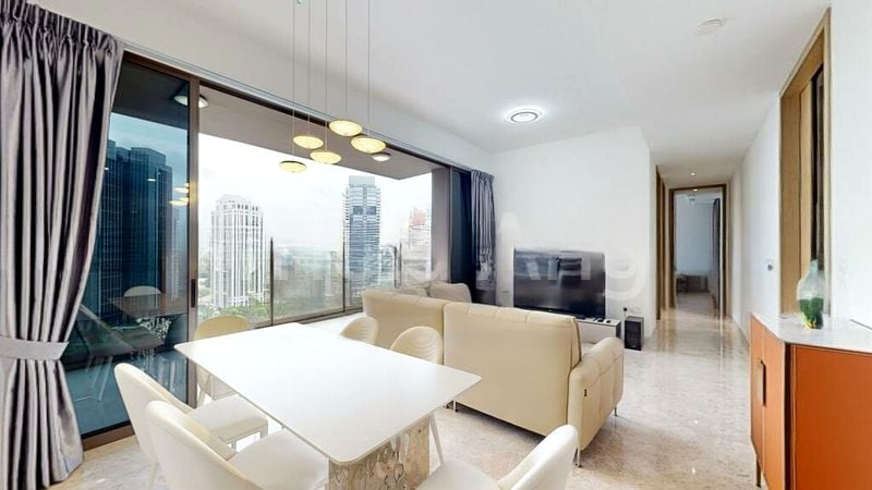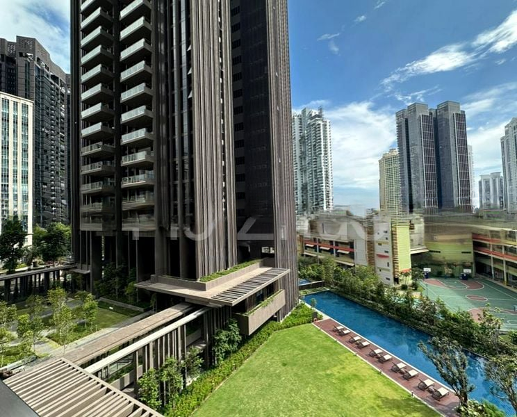 Step into a world of elegance as you enter this brand-new unit at The Avenir. The abundant natural light floods through the floor-to-ceiling windows, illuminating the exquisite marble flooring in the living area. Enjoy breathtaking views of the pool, lush greenery, and the vibrant city skyline, creating a serene yet dynamic ambiance that is both modern and minimalist.