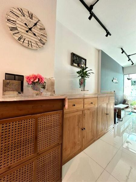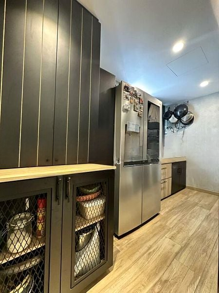 This well-maintained, fully-furnished unit boasts an efficient 3-bedroom layout, complete with a dedicated utility room. The open-concept dining area features a striking full-height mirror wall that enhances the sense of space, while the galley kitchen is equipped with extensive windows for ventilation and white solid surface countertops. Each bedroom is thoughtfully designed with built-in wardrobes, ensuring ample storage and comfort.