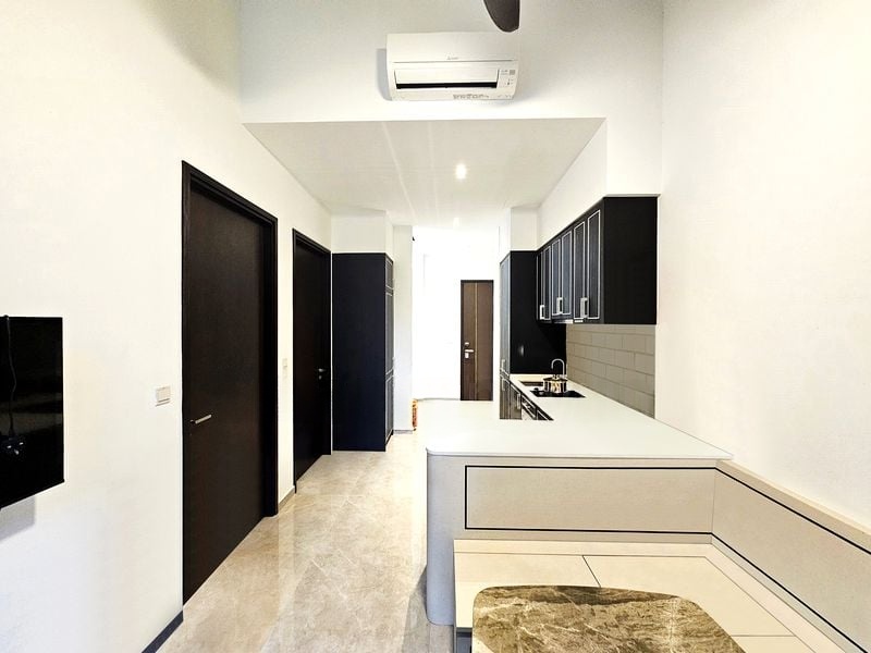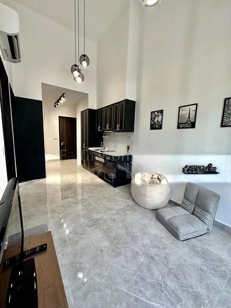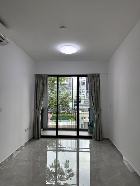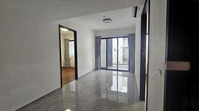 Step into this beautifully renovated unit at Mayfair Gardens, where abundant natural light floods the open-concept living space, accentuating the polished tile flooring and modern minimalist finishes. The inviting ambiance is enhanced by views of lush greenery and neighboring buildings, creating a serene retreat in the heart of District 21.
