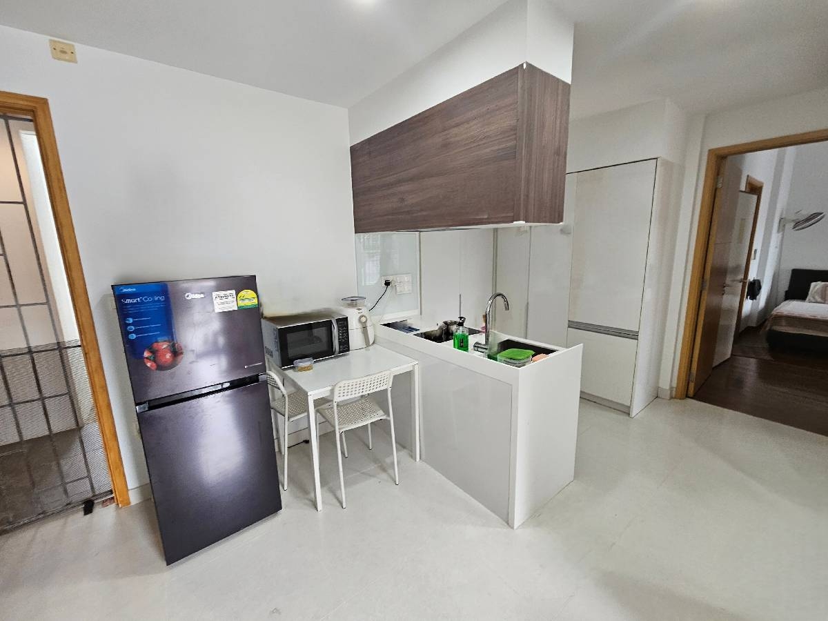 Step into a world of modern elegance as you enter this well-maintained unit at CASA CAMBIO. The high ceilings and natural light create an inviting ambiance, while the sleek finishes and minimalist design offer a contemporary feel. Enjoy the views of neighboring buildings from your private balcony, complete with a glass railing that enhances the openness of the space.