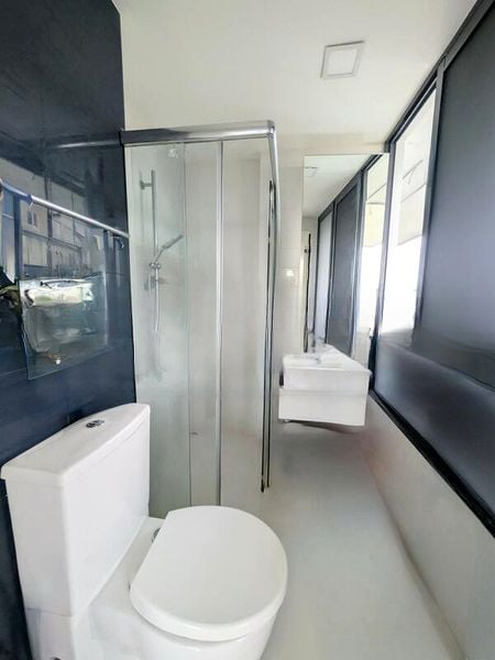 This well-maintained unit features a modern layout with polished white tile flooring in the living room, a sleek kitchen equipped with integrated appliances, and a luxurious bathroom showcasing a glass shower enclosure. The spacious bedrooms offer large windows that frame stunning views, while the living area seamlessly connects to the balcony, perfect for entertaining or unwinding after a long day.