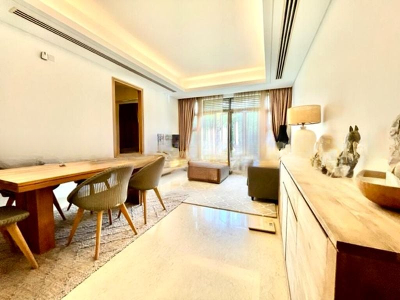 Step into a world of elegance as you enter this beautifully renovated unit at St Martin Residence. The abundant natural light floods the open-plan living and dining area, highlighting the recessed ceiling with cove lighting and the cozy ambiance created by the warm finishes. Large windows adorned with sheer curtains frame stunning views of lush greenery and the city skyline, inviting you to unwind in this serene space.