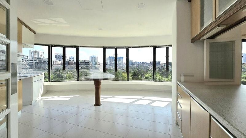 Step into a world of elegance and tranquility as you enter this well-maintained 4-bedroom unit at The Draycott. The bright and airy ambiance is accentuated by abundant natural light streaming through panoramic windows, showcasing stunning views of the city skyline and lush greenery. Polished wood flooring and curved ceiling features create a sophisticated atmosphere, while the open-concept living area invites relaxation and social gatherings.