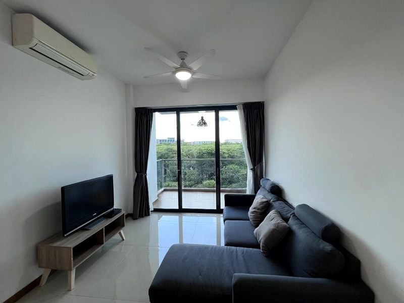 Step into this beautifully renovated 3-bedroom unit at Kingsford Waterbay and be greeted by a modern ambiance that exudes comfort and style. The marble-look floor tiles reflect natural light, enhancing the spacious living room that seamlessly connects to a private balcony overlooking lush greenery. The geometric feature wall and elegant chandelier add a touch of sophistication, making it the perfect space for relaxation and entertainment.