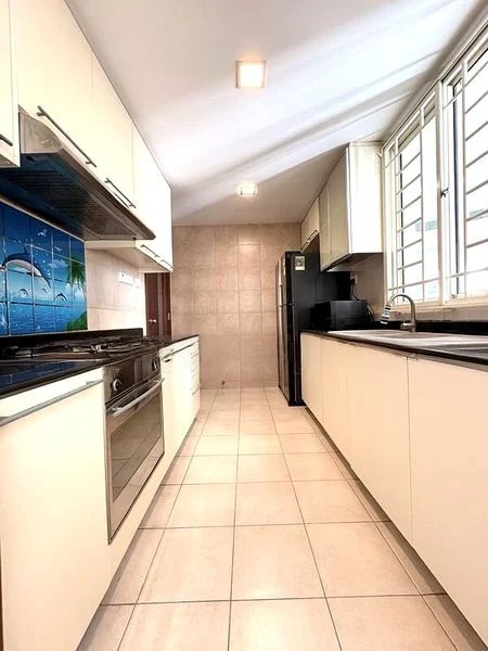 This well-maintained 3-bedroom, 2-bathroom unit boasts a thoughtful layout with standout features including built-in floor-to-ceiling wardrobes, an integrated study desk, and a stylish kitchen equipped with black countertops and a double-bowl sink. The living area is perfect for relaxation, while the bedrooms offer a cozy retreat with wood parquet flooring and ample storage.