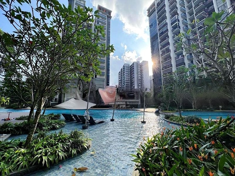 Step into this inviting 2-bedroom unit at Lakeville, where abundant natural light floods the open-concept living area, creating a warm and cozy ambiance. The floor-to-ceiling sliding doors lead you to a private balcony that overlooks the serene swimming pool and lush greenery, offering a perfect spot to unwind after a long day.