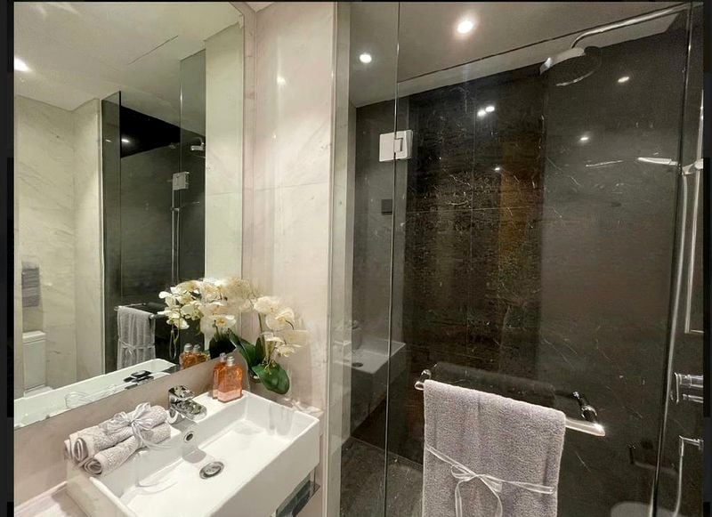 Step into a world of modern luxury as you enter this brand-new designer unit at St Regis Residences. The abundant natural light floods through floor-to-ceiling windows, illuminating the exquisite marble feature walls and elegant pendant lighting, creating an ambiance that is both inviting and sophisticated. Enjoy serene views of lush greenery that enhance the tranquil atmosphere of your living space.