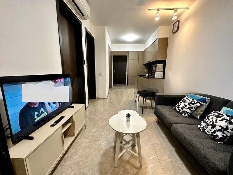 Step into a world of modern elegance as you enter this beautifully renovated 2-bedroom unit at Park Colonial. Bathed in abundant natural light, the open-concept living area features sleek grey cabinetry, large format floor tiles, and track lighting that enhances the minimalist ambiance. Enjoy serene views of lush greenery and neighboring buildings from your private master bedroom balcony, creating a tranquil retreat in the heart of the city.