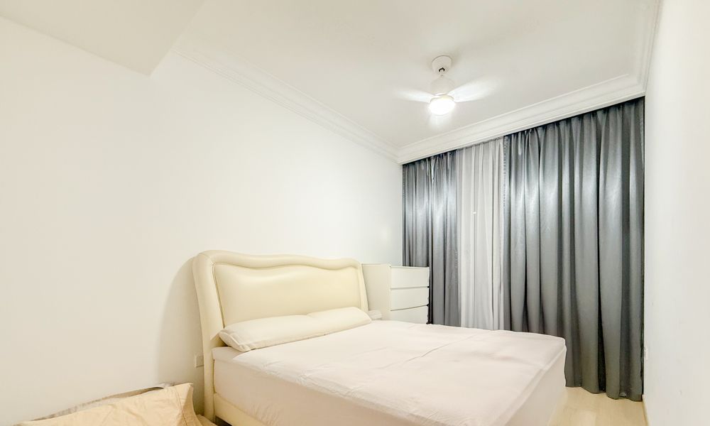 This well-maintained 3-bedroom, 2-bathroom condo features standout elements such as built-in floor-to-ceiling wardrobes, a dual-tone kitchen with white quartz countertops, and a mosaic tile bathroom feature wall. The integrated study desk in the versatile study/bedroom adds functionality, while the modern bathroom boasts a rain shower head and stylish vanity.
