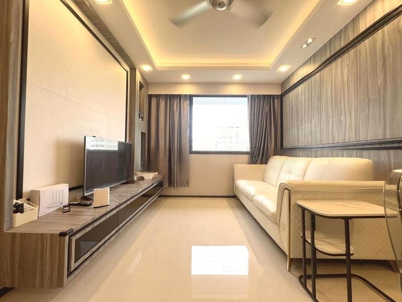Step into this beautifully designed 2-bedroom flat at Punggol Walk, where modern minimalism meets urban elegance. The moment you enter, you're greeted by polished floor tiles and wood-look feature walls that create a warm yet sophisticated ambiance. Natural light filters through, highlighting the stylish cove lighting and offering captivating views of the urban skyline from the living room and balcony.