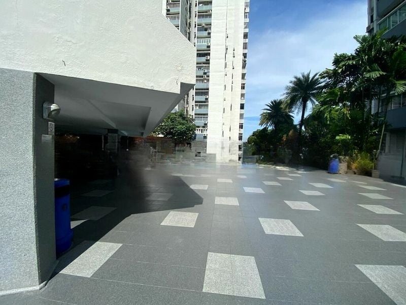 Step into this beautifully renovated unit at The Shore Residences and be greeted by an abundance of natural light pouring through the floor-to-ceiling windows. The modern ambiance is accentuated by a striking red accent wall and marble-look floor tiles, creating an inviting atmosphere that feels both luxurious and comfortable. Enjoy breathtaking views of the city skyline, pool, and lush greenery from your private balcony, perfect for unwinding after a long day.