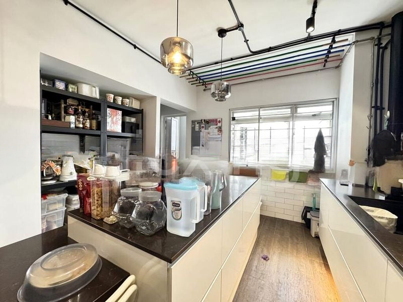 Step into this beautifully renovated 4-bedroom flat and be captivated by its modern industrial ambiance. The space is bathed in natural light, highlighting the stunning wood-look wall tiles in the kitchen and the striking exposed conduits that add character to the open layout. The inviting living and study area, complete with track lighting and a cozy study nook, creates a perfect blend of style and functionality.