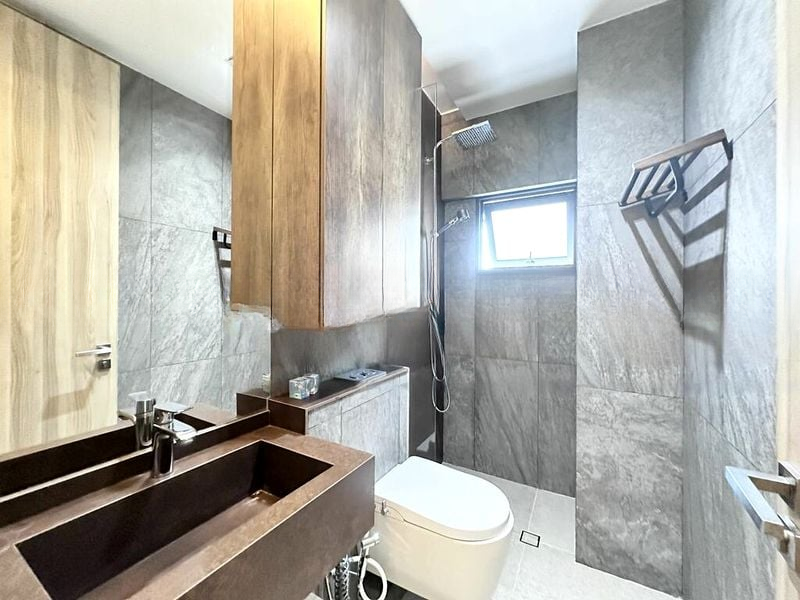 Step into a world of elegance as you enter this beautifully designed home, where abundant natural light floods through floor-to-ceiling glass doors, illuminating the modern minimalist interiors. The ambiance is enhanced by polished wood flooring and cove lighting, creating a serene and inviting atmosphere. Enjoy picturesque views of the surrounding greenery from your spacious terrace, perfect for relaxation and entertaining.