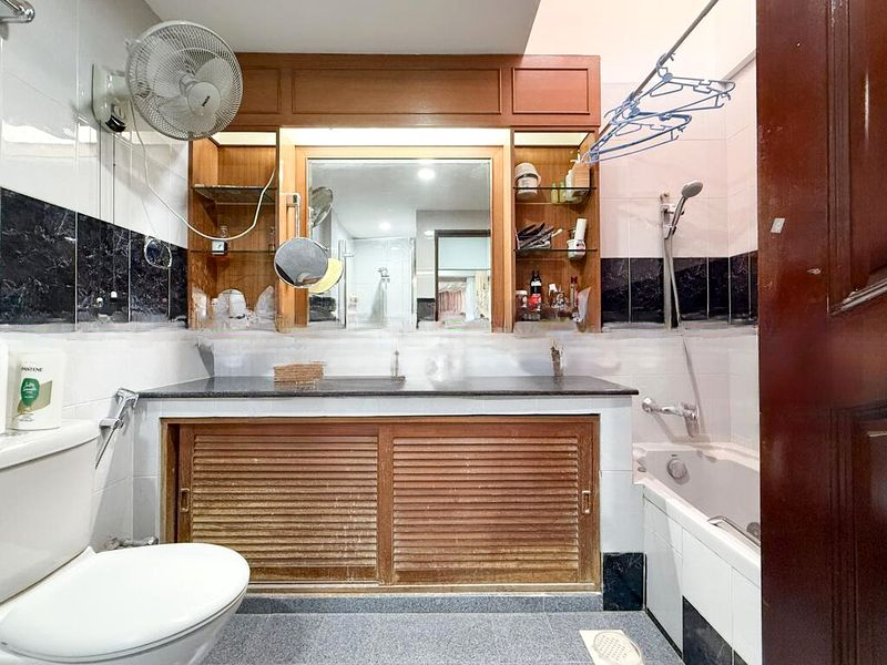 This impressive unit features a long layout that seamlessly connects the living room to the outdoor space, making it ideal for entertaining. The seven bedrooms are designed for comfort, with split-unit air conditioning and recessed lighting enhancing the ambiance. The bathrooms showcase luxurious marble-look tiles and wall-hung toilets, while the wooden vanity cabinets add a touch of warmth. With a total floor area of 6189 sqft, this home provides ample space for family living.