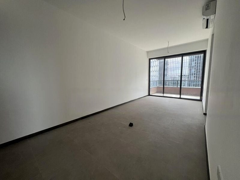 Step into this brand-new unit at Midtown Modern and be captivated by the seamless blend of modern minimalist design and lush greenery views. The spacious living room, adorned with large sliding glass doors, invites natural light to dance across the grey floor tiles and pristine white walls, creating an airy ambiance that feels both welcoming and sophisticated.