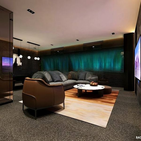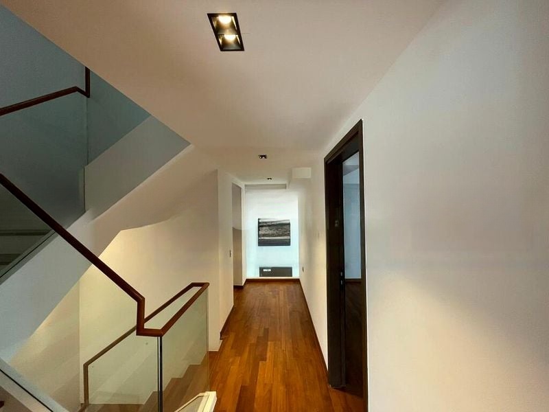 This impressive residence boasts six spacious bedrooms, each featuring elegant teak wood flooring and floor-to-ceiling windows that enhance the sense of space. The layout is thoughtfully designed, with a private lift providing seamless access to all levels. The staircase, adorned with wood treads and a glass railing, leads to a stunning balcony where you can unwind while soaking in the picturesque surroundings.