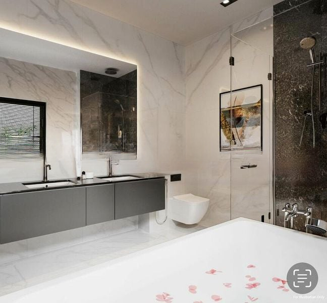 Step into a world of luxury as you enter this brand-new home, where abundant natural light floods the open-concept living and dining area, accentuated by exquisite white marble flooring. The floor-to-ceiling sliding glass doors invite you to enjoy breathtaking views of the city skyline and your private swimming pool, creating an ambiance that is both bright and airy.