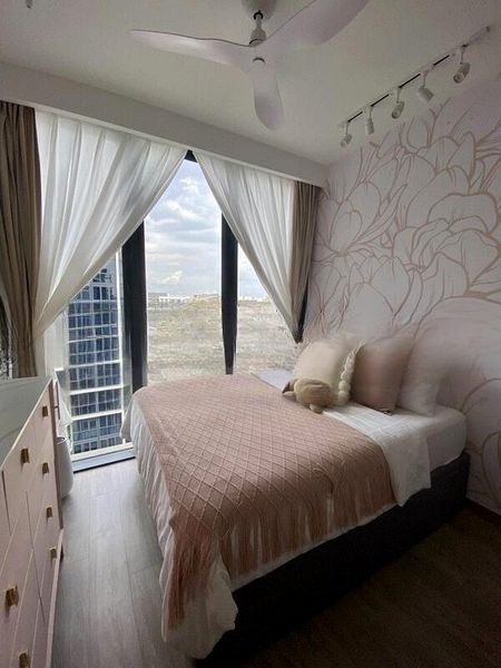 Step into a serene oasis where modern minimalist design meets functionality. This well-maintained 1-bedroom unit at The Tapestry welcomes you with an abundance of natural light, showcasing stunning views of the large swimming pool and lush greenery. The polished floor tiles and designer finishes create an inviting ambiance, perfect for relaxation.