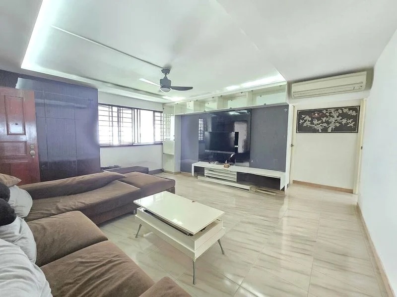 Step into a functional and lived-in space that offers a blend of comfort and practicality. The moderate natural light streams through the windows, illuminating the glossy stone-pattern floor tiles and the tiled feature wall in the living room. Enjoy the urban views from your windows, creating a vibrant backdrop to your daily life.