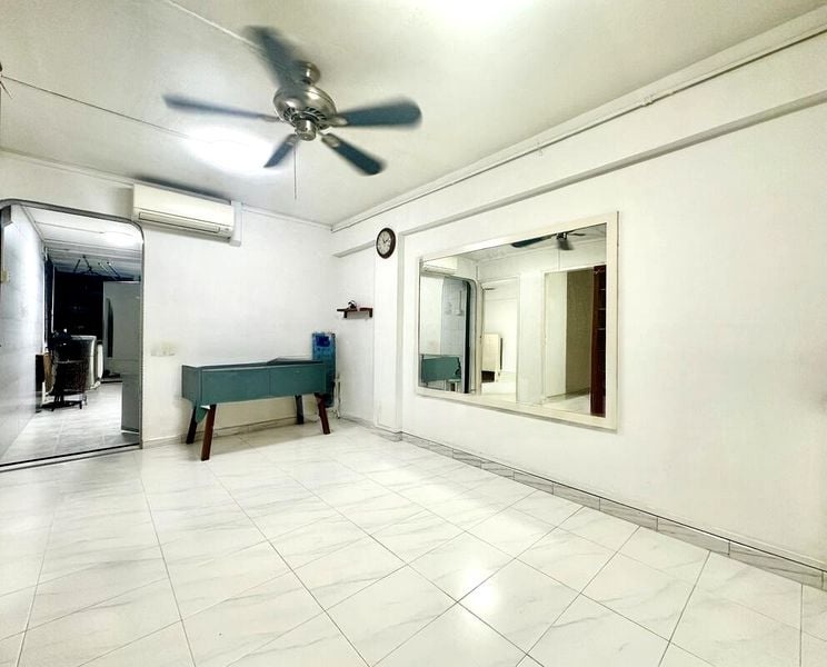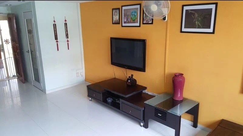 Step into this well-maintained 3-bedroom HDB flat and feel the inviting ambiance created by the vibrant orange accent wall in the living room, complemented by a tufted black sofa and decorative wall decals. Natural light filters through the space, enhancing the functional layout and making it a perfect home for family living.