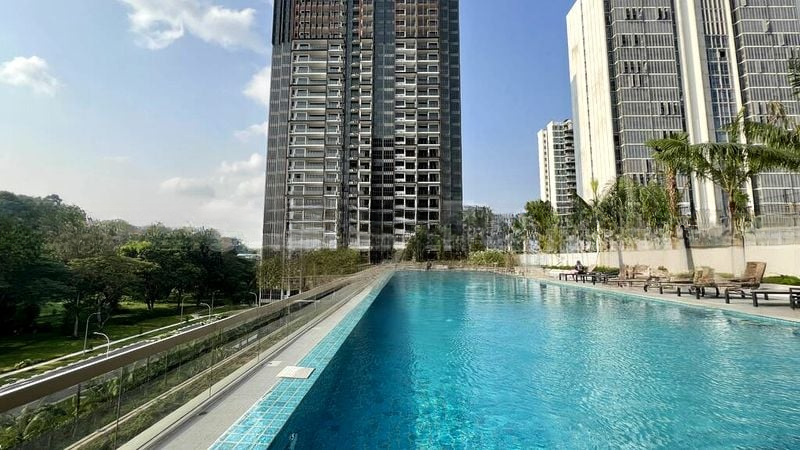 Step into a world of modern elegance as you enter this brand-new unit at MIDWOOD. Bathed in abundant natural light, the open-concept living area features floor-to-ceiling windows that frame breathtaking views of lush greenery and the city skyline. The polished flooring and minimalist design create a bright and airy ambiance, inviting you to unwind in style.