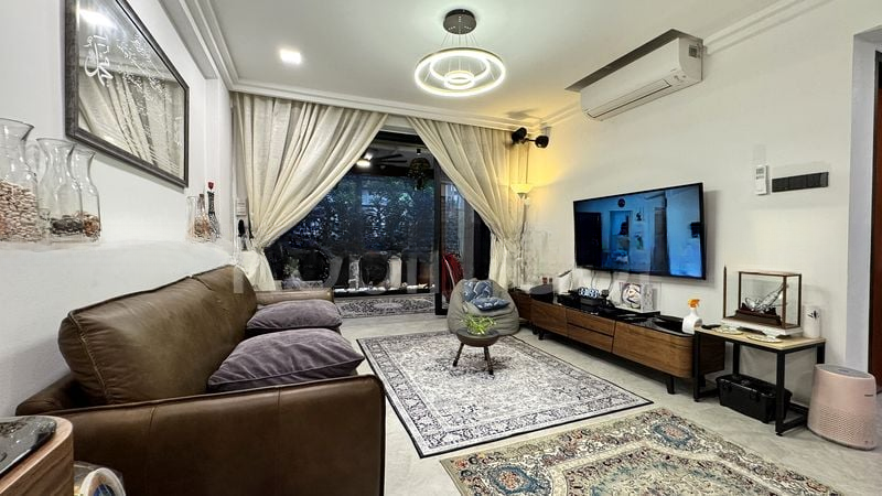 Step into this beautifully renovated unit at Simei Green Condominium, where the warm ambiance envelops you in comfort. The polished marble flooring in the living area reflects natural light, while large windows frame views of lush greenery and neighboring blocks, creating a serene retreat from the bustling city.