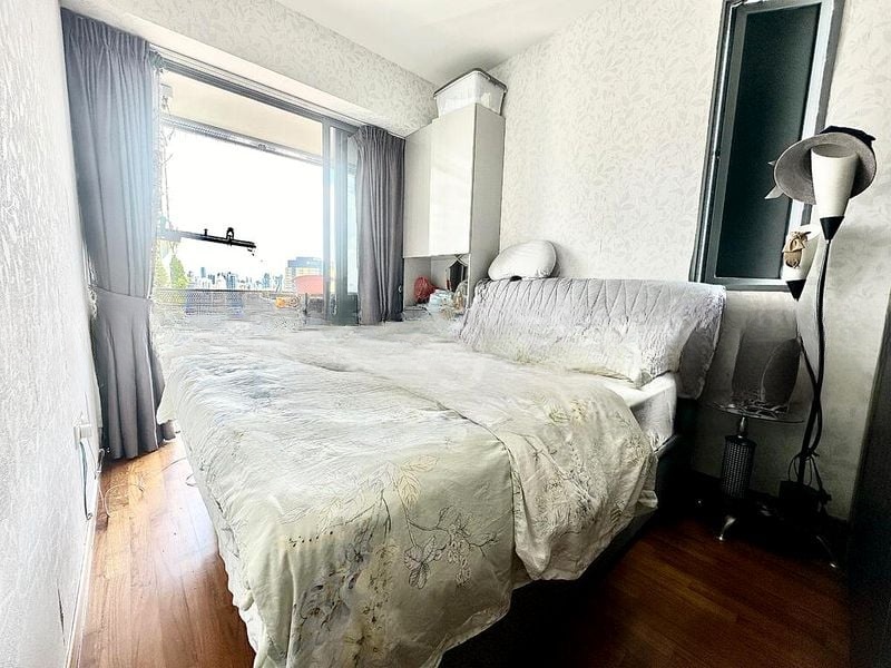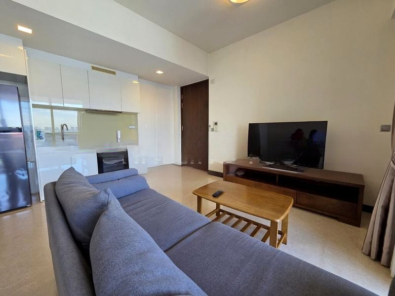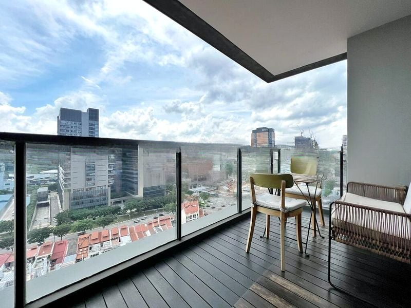 Step into a bright and airy living space at Spottiswoode Residences, where abundant natural light floods through the floor-to-ceiling windows, offering stunning views of the city skyline and lush greenery. The open-concept living room seamlessly connects to a private balcony, perfect for enjoying the urban landscape while basking in the gentle breeze.