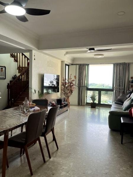 Step into this beautifully maintained unit at Yew Mei Green and be greeted by an abundance of natural light that fills the spacious living and dining area. The terrazzo flooring adds a touch of elegance, while large windows frame stunning unblocked views of lush greenery and the city skyline, creating a serene ambiance that invites relaxation.