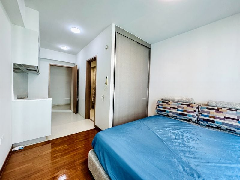 This thoughtfully designed 1-bedroom unit features a self-contained master suite complete with a built-in sliding wardrobe and a wall-mounted TV for your entertainment needs. The integrated kitchenette is equipped with essential appliances, including a compact fridge and washing machine, while the bathroom boasts a luxurious rain shower and a vessel sink, ensuring both comfort and convenience in your daily routine.