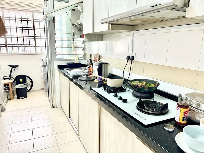 Step into this well-maintained 4-bedroom flat and be greeted by an abundance of natural light that fills the bright and airy interiors. The efficient layout showcases stunning black granite countertops in the kitchen, complemented by white cabinetry and louvered windows that enhance ventilation. The ambiance is inviting, with urban views from the large windows that create a serene backdrop for your daily life.