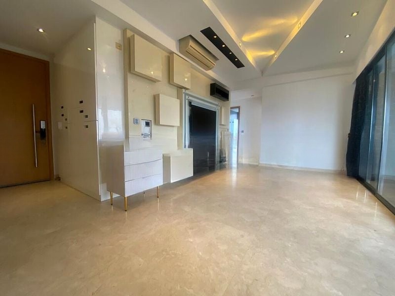 Step into a world of elegance and sophistication as you enter this beautifully renovated unit at Lucida. The bright and airy ambiance is accentuated by abundant natural light streaming through the floor-to-ceiling windows, showcasing breathtaking views of the city skyline and lush greenery. The double-volume ceiling and modern chandelier create a striking focal point, while the glass floor feature and mirrored dining wall add a touch of contemporary flair.
