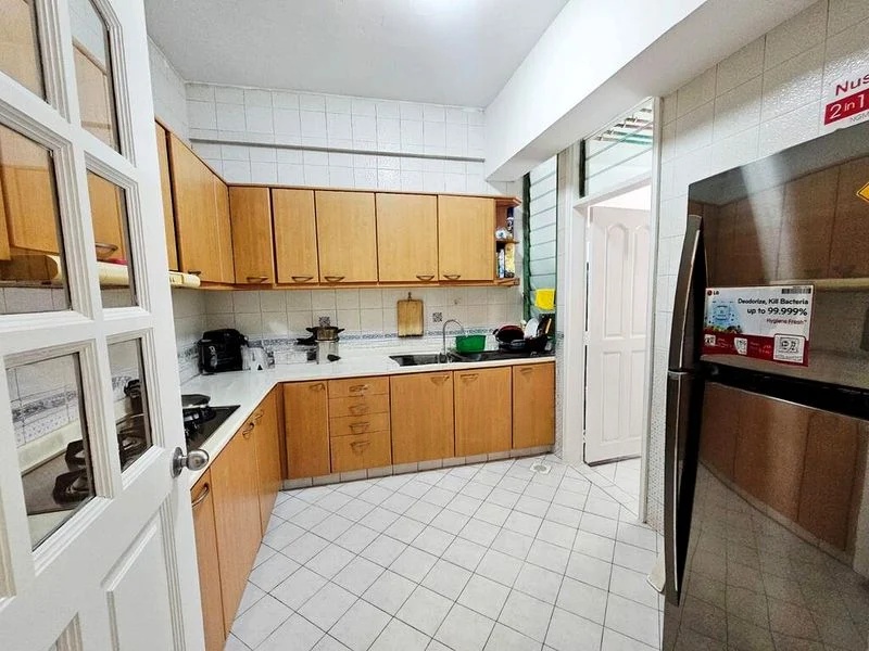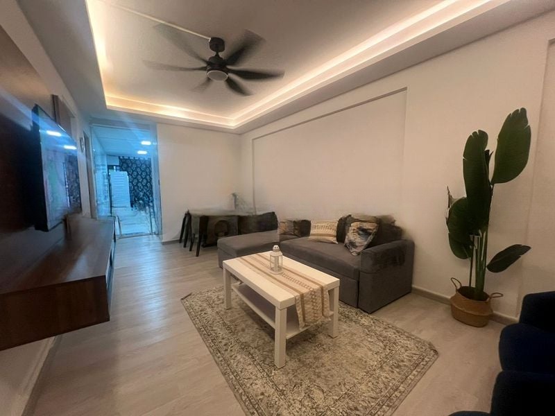Step into a functional and lived-in HDB flat that greets you with its charming marble-patterned floor tiles and an abundance of natural light filtering through the windows. The spacious living room, adorned with a dual sofa arrangement and ceiling fan, offers a cozy ambiance perfect for relaxation. Enjoy views of the surrounding greenery and neighboring buildings, creating a serene atmosphere in the heart of Bedok.