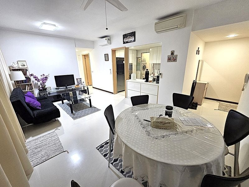Step into a world of tranquility with this bright and airy 4-bedroom unit at Kovan Residences. The abundant natural light floods the space, highlighting the well-maintained finishes and creating an inviting ambiance. The large covered balcony, adorned with glass railings, offers stunning views of the lush tropical landscape, perfect for relaxation or entertaining guests.