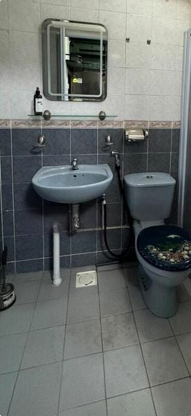 Step into a beautifully maintained HDB flat that exudes warmth and functionality. The open concept living and dining area welcomes you with its striking teal accent wall, complemented by an ornate chandelier that adds a touch of elegance. Natural light filters through the window, creating a cozy ambiance that invites relaxation.