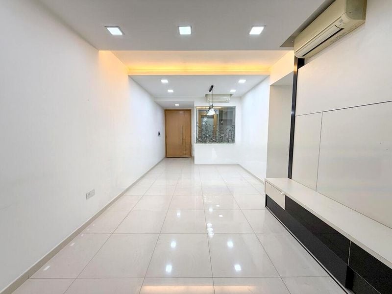 Step into a beautifully renovated sanctuary where abundant natural light floods through large floor-to-ceiling windows, creating a bright and airy ambiance. The polished floor tiles and elegant pink accent wall in the living room invite you to unwind, while the stunning marble-look countertops in the kitchen promise culinary delights amidst a backdrop of modern sophistication.